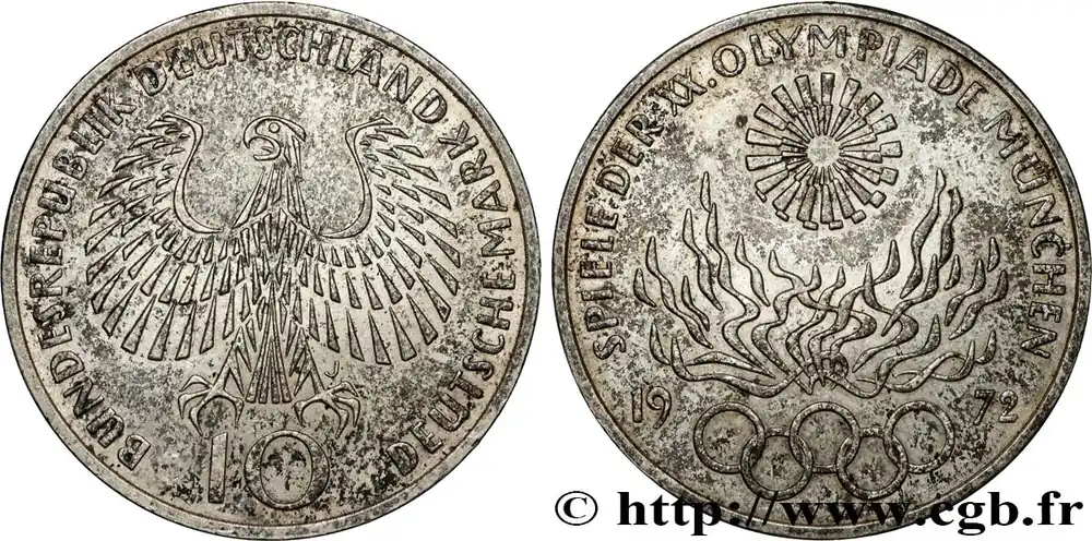 ALLEMAGNE 10 Mark / XXe J.O. Munich – Flamme olympique 1972 Stuttgart fwo_750106 Monde Garantie Incluse