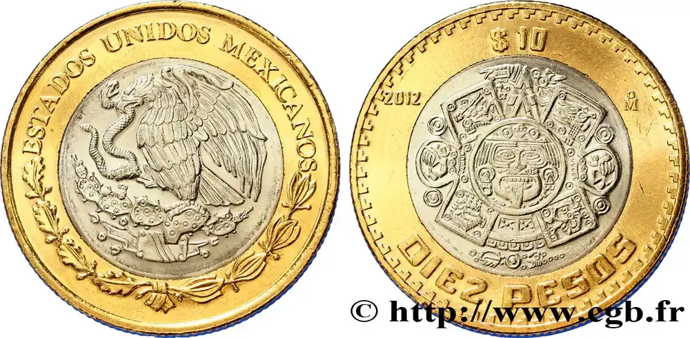 MEXIQUE 10 Pesos aigle / la Pierre du Soleil 2012 Mexico fwo_844616 Monde Affaire À Saisir