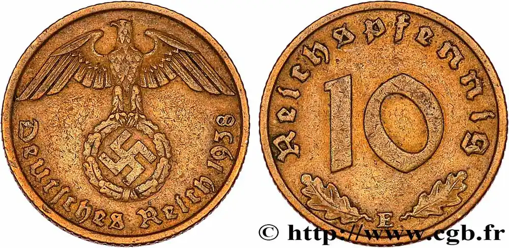Soldes ALLEMAGNE 10 Reichspfennig aigle surmontant une swastika 1938 Muldenhütten – E fwo_752190 Monde