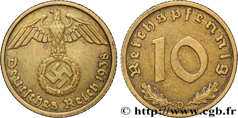 Usine Directe ALLEMAGNE 10 Reichspfennig aigle surmontant une swastika 1938 Munich – D fwo_854452 Monde