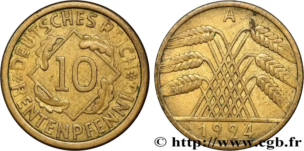 ALLEMAGNE 10 Rentenpfennig gerbe de blé 1924 Berlin fwo_836985 Monde Prix Réduit