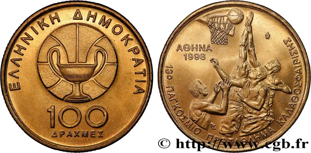 GRÈCE 100 Drachmes 13e championnat du Monde de basketball 1998 fwo_654348 Monde Usine Directe