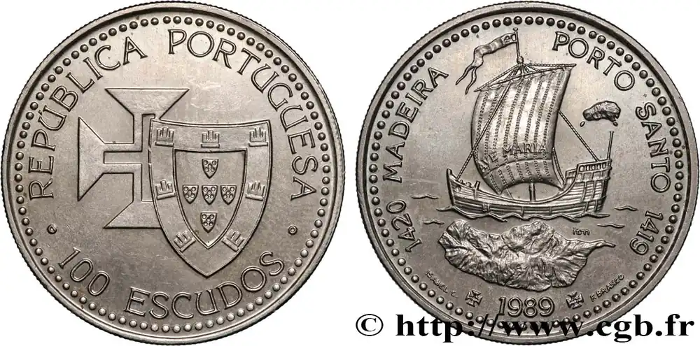 PORTUGAL 100 Escudos Découvertes Portugaises de Madère 1420 et Porto Santo 1419 1989 fwo_705430 Monde Gros Lot