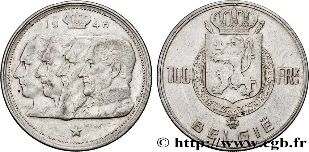 Authentique BELGIQUE 100 Francs bustes des quatre rois de Belgique, légende flamande 1948 fwo_863189 Monde