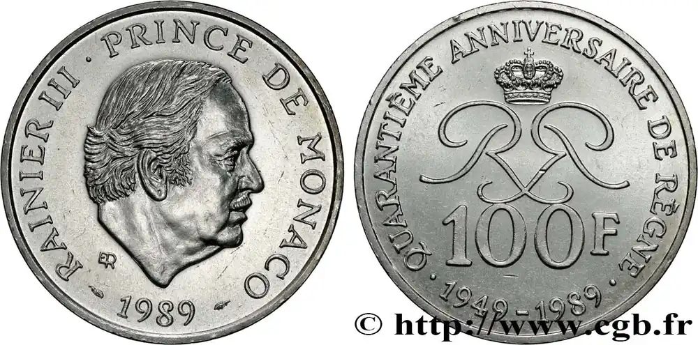 MONACO 100 Francs Rainier III 40e anniversaire de règne 1989 Paris fwo_861601 Monde Tendance