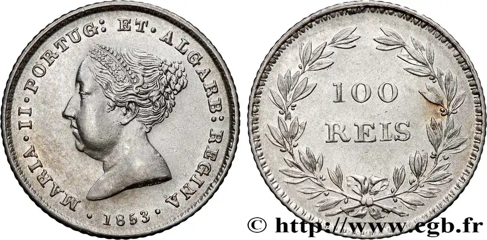 PORTUGAL – ROYAUME DE PORTUGAL – MARIE II 100 Réis 1853 fwo_774174 Monde Promotion Saisonnière