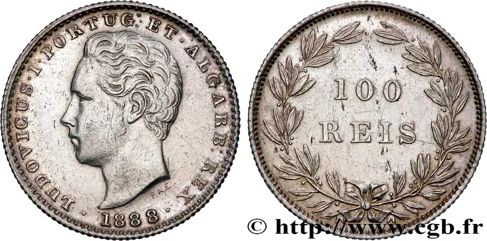 PORTUGAL – ROYAUME DU PORTUGAL – LOUIS Ier 100 Réis 1888 fwo_774282 Monde Réduction