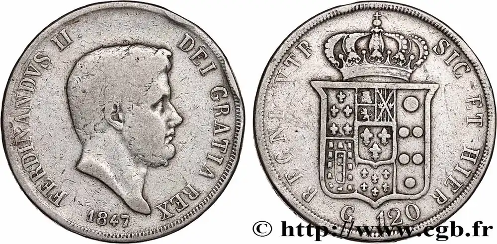 ITALIE – ROYAUME DES DEUX-SICILES 120 Grana Ferdinand II 1847 Naples fwo_749134 Monde En Vogue