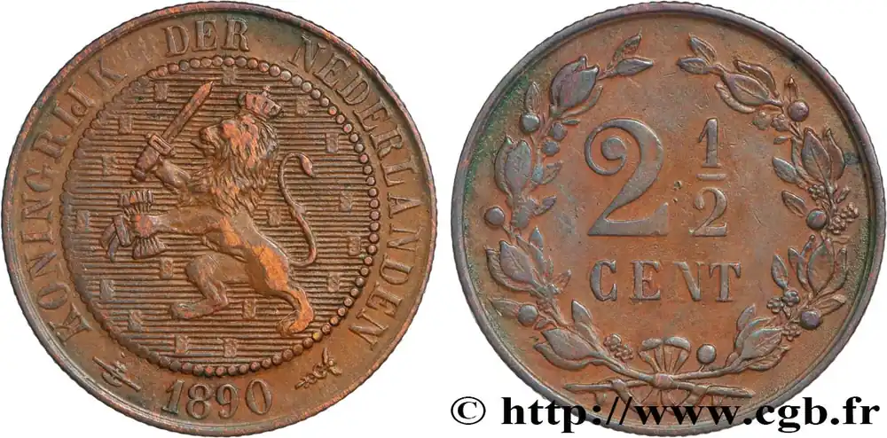PAYS-BAS 2 1/2 Cents lion couronné 1890 Utrecht fwo_826921 Monde Jusqu’à Épuisement Des Stocks