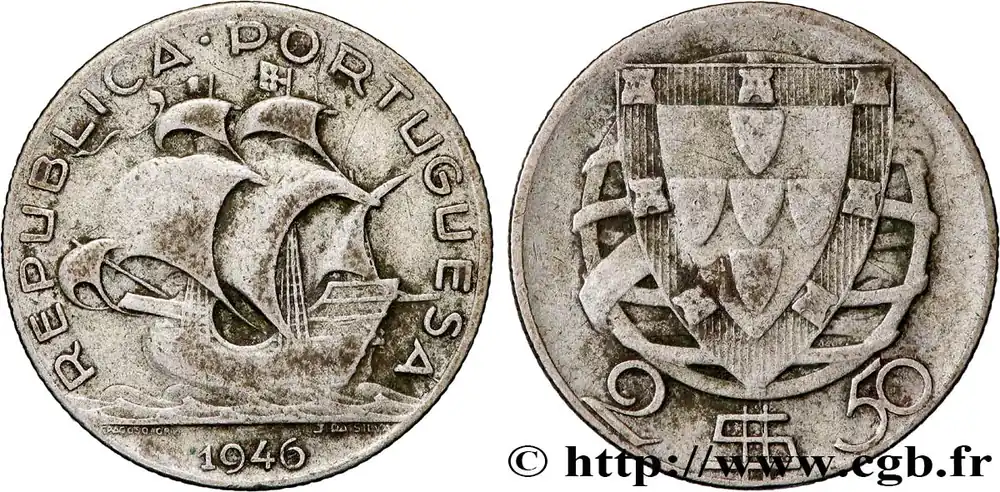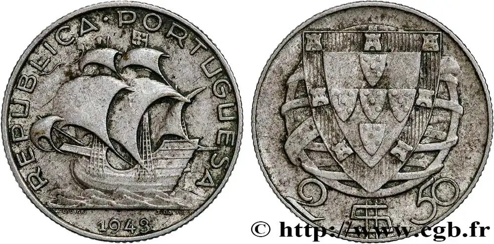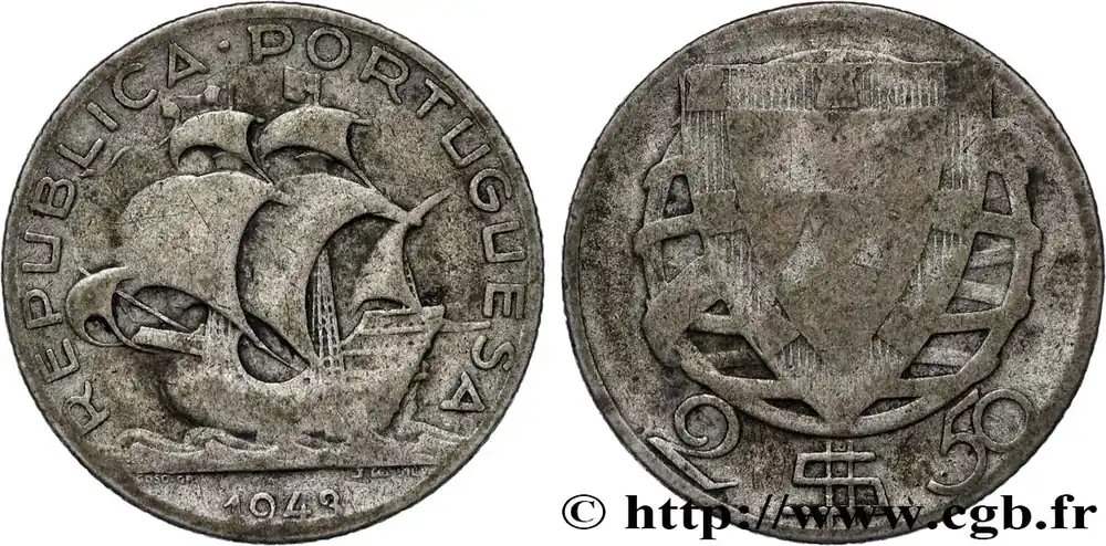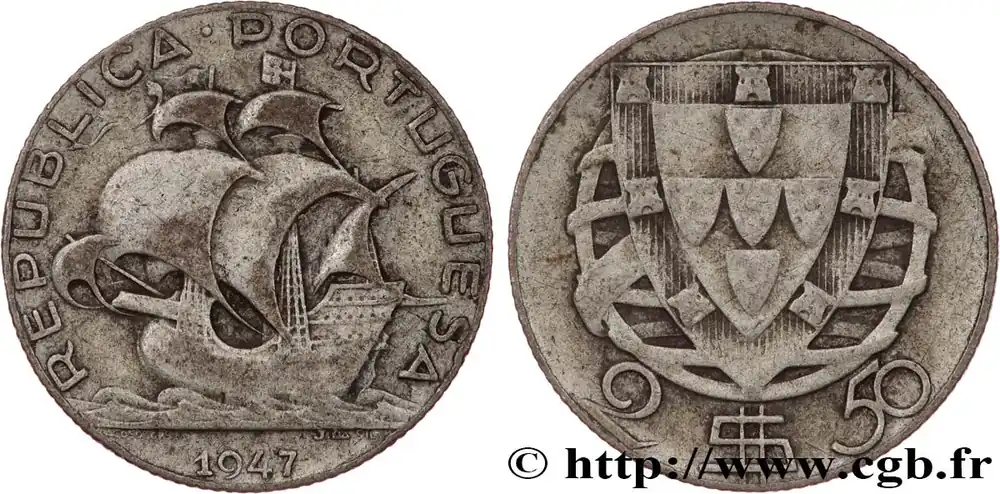 PORTUGAL 2 1/2 Escudos 1947 fwo_808383 Monde Commande En Gros