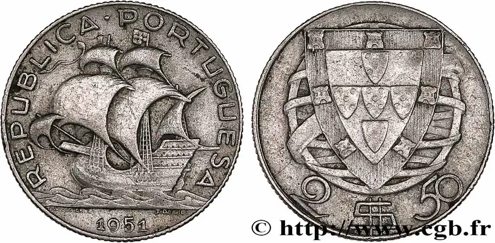 PORTUGAL 2 1/2 Escudos 1951 fwo_761332 Monde Livraison Express