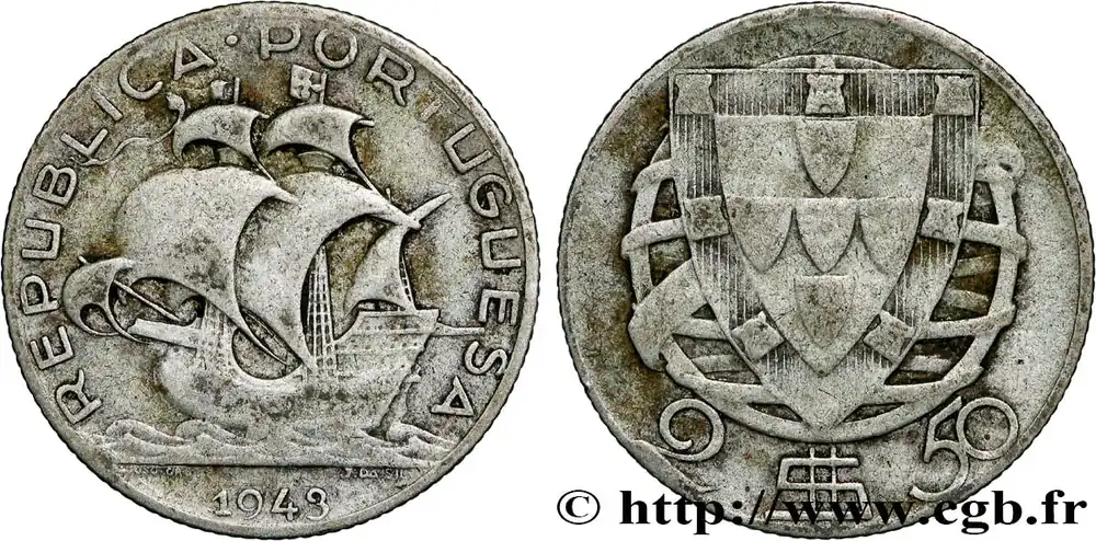 Prix Cassé PORTUGAL 2 1/2 Escudos 1943 fwo_747612 Monde