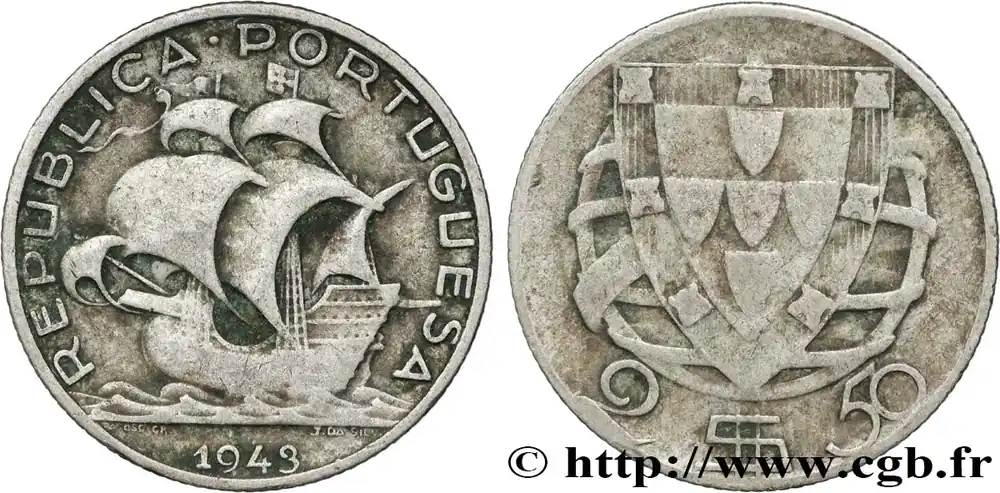 PORTUGAL 2 1/2 Escudos 1943 fwo_791255 Monde Paiement Sécurisé