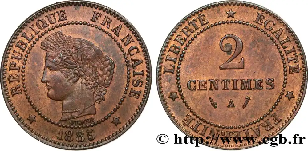 Haute Qualité 2 centimes Cérès 1885 Paris F.109/10 fmd_583991 Modernes