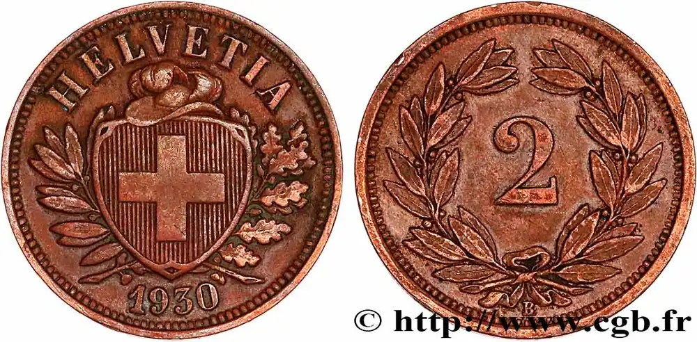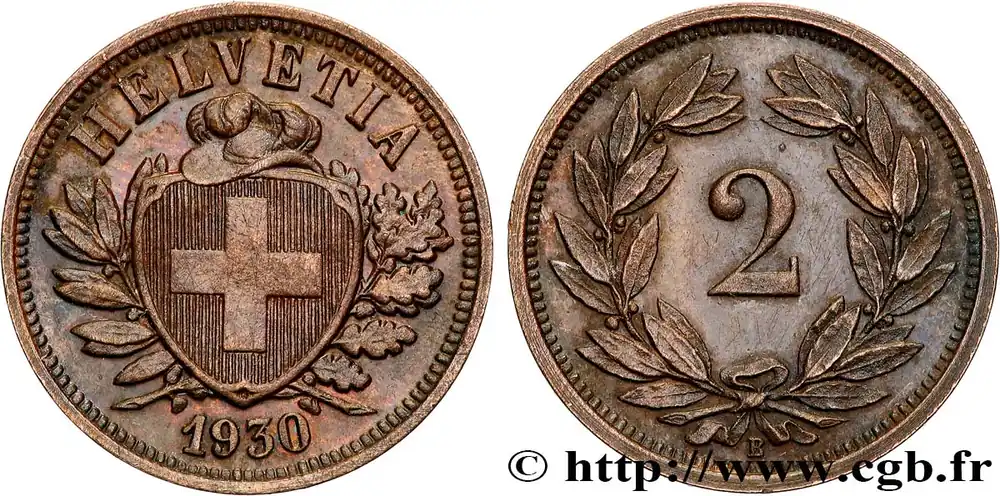 Édition Limitée SUISSE 2 Centimes (Rappen) croix suisse 1930 Berne – B fwo_816145 Monde