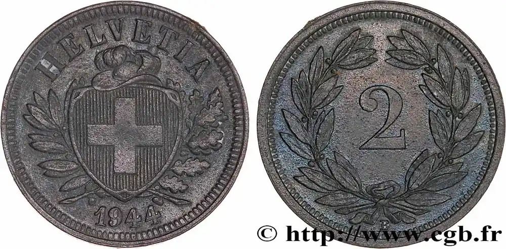 Expédié Aujourd’hui SUISSE 2 Centimes (Rappen) croix suisse 1944 Berne – B fwo_782150 Monde