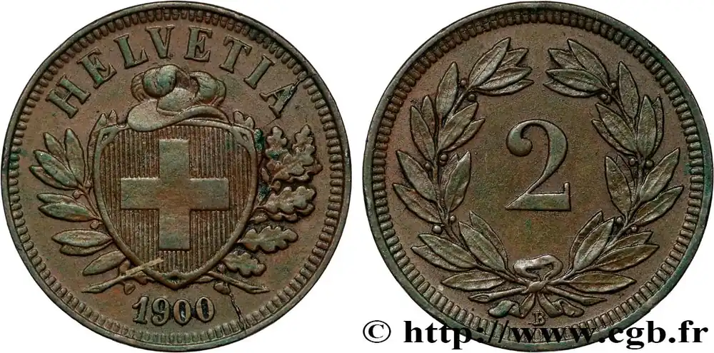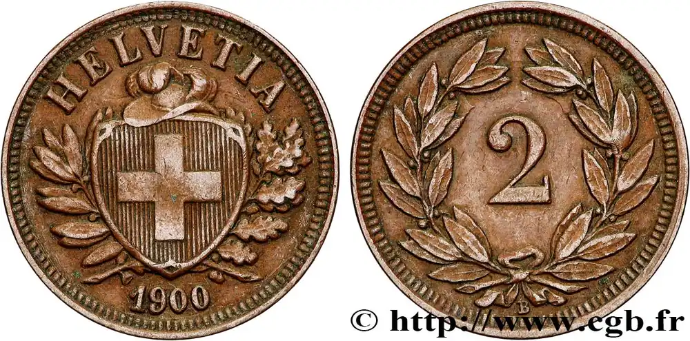 Achat Immédiat SUISSE 2 Centimes (Rappen) croix suisse 1900 Berne – B fwo_868679 Monde