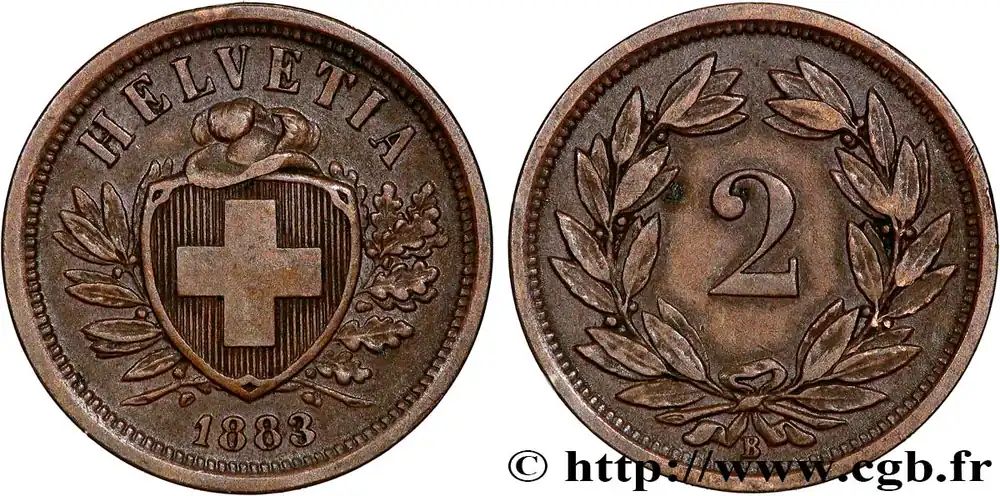 Édition Limitée SUISSE 2 Centimes (Rappen) croix suisse 1883 Berne – B fwo_815958 Monde