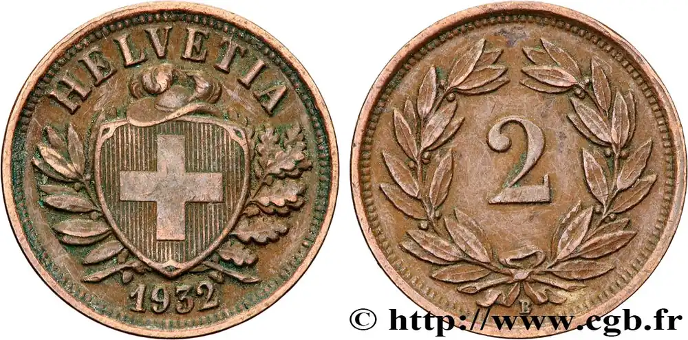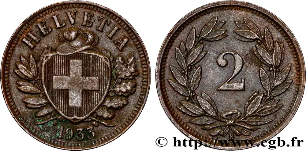 Exclusif SUISSE 2 Centimes (Rappen) croix suisse 1933 Berne – B fwo_834970 Monde