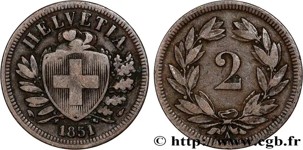 Commander Vite SUISSE 2 Centimes (Rappen) croix suisse 1851 Paris fwo_815804 Monde