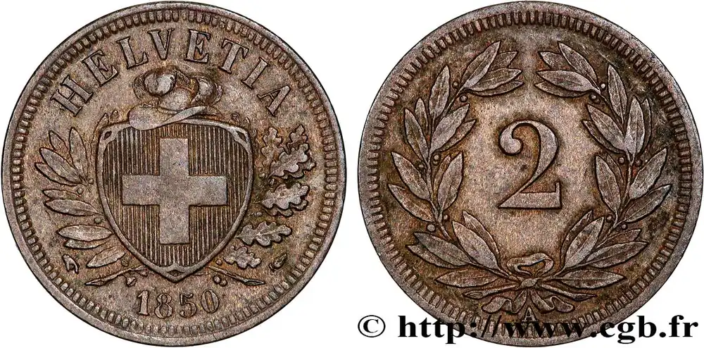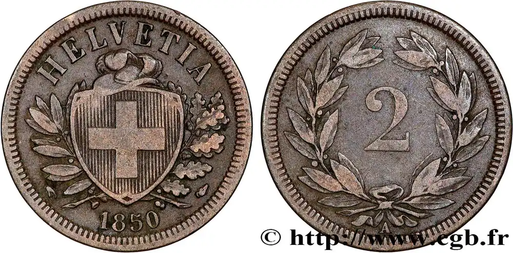 Commander Vite SUISSE 2 Centimes (Rappen) croix suisse 1850 Paris fwo_815762 Monde