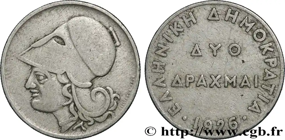Commande En Gros GRÈCE 2 Drachmes Athéna 1926 Vienne fwo_895036 Monde