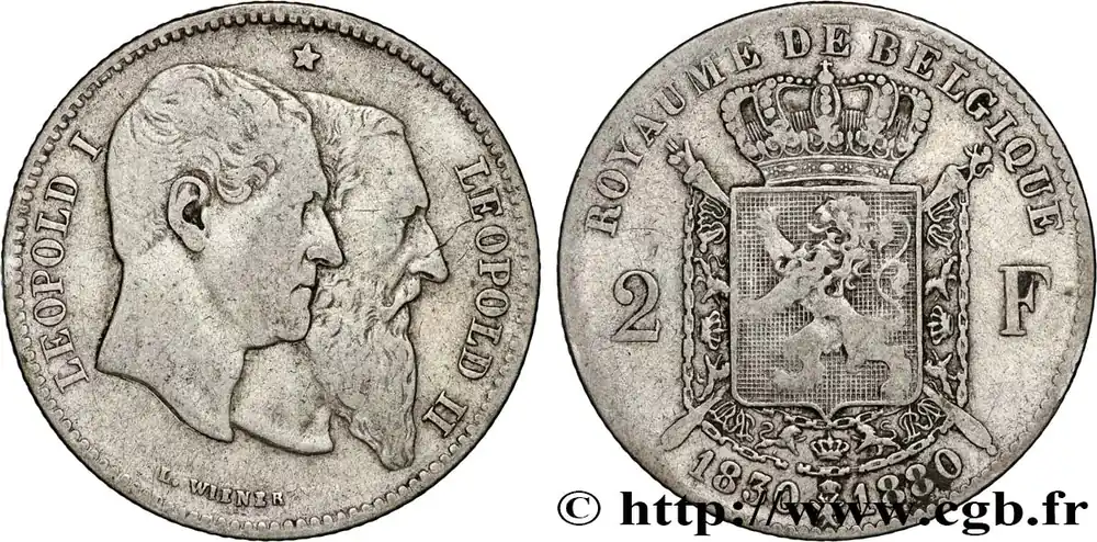 BELGIQUE 2 Francs 50e anniversaire de l’indépendance 1880 fwo_885632 Monde Vente Directe
