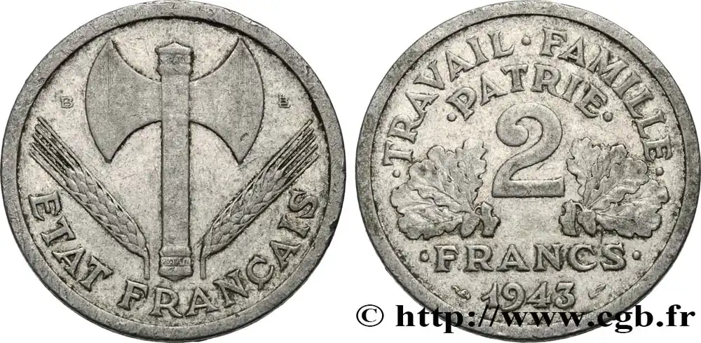 Acheter En Ligne 2 francs Francisque 1943 Beaumont-Le-Roger F.270/3 fmd_584710 Modernes