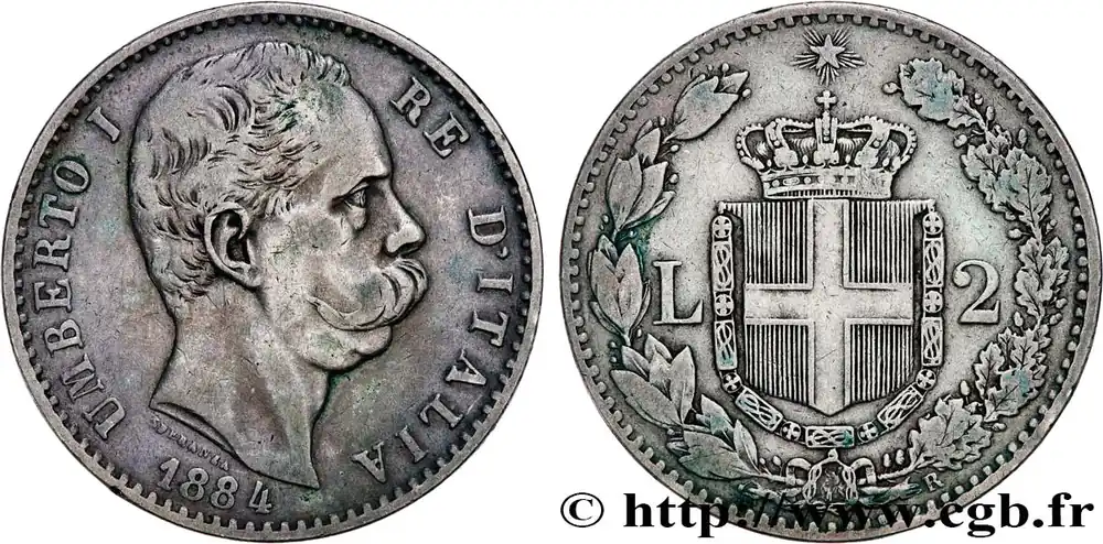 Prix Bas ITALIE 2 Lire Humbert Ier 1884 Rome fwo_747366 Monde