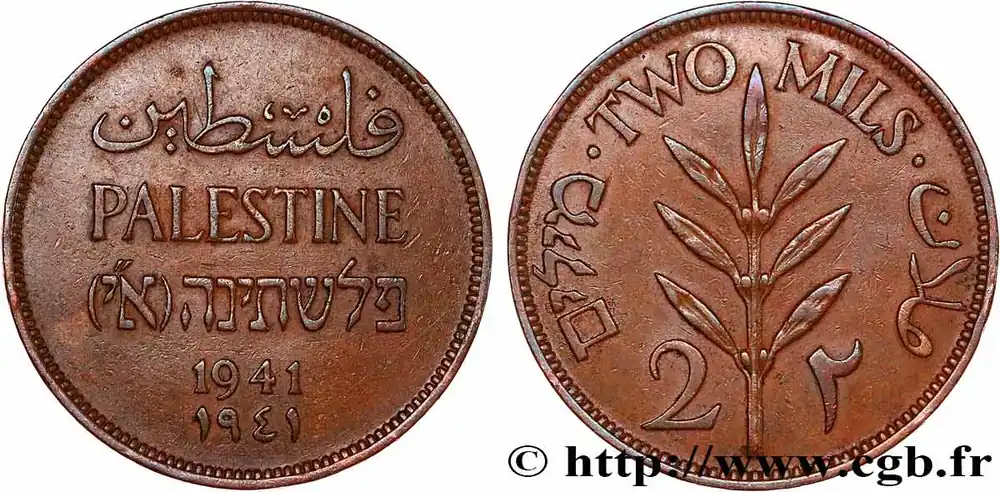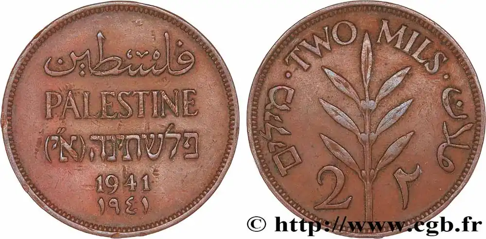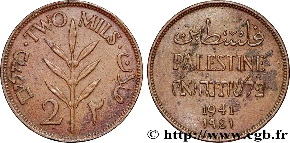 Top Vente PALESTINE 2 Mils 1941 fwo_745821 Monde