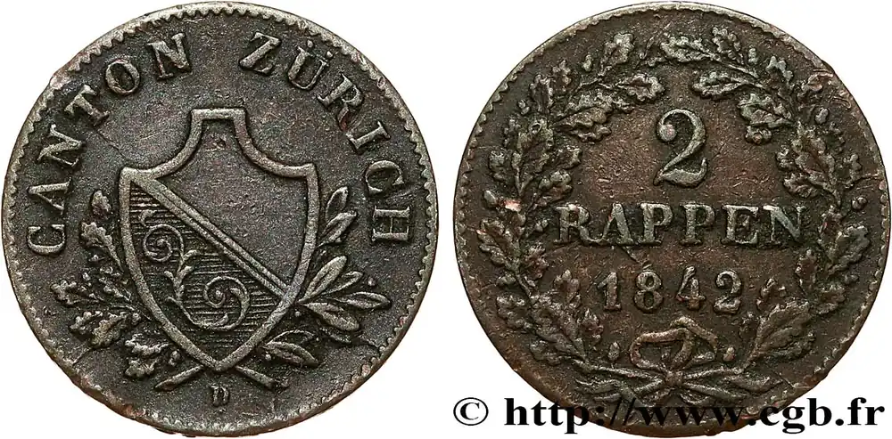 SUISSE – CANTON DE ZÜRICH 2 Rappen 1842 fwo_789732 Monde Original