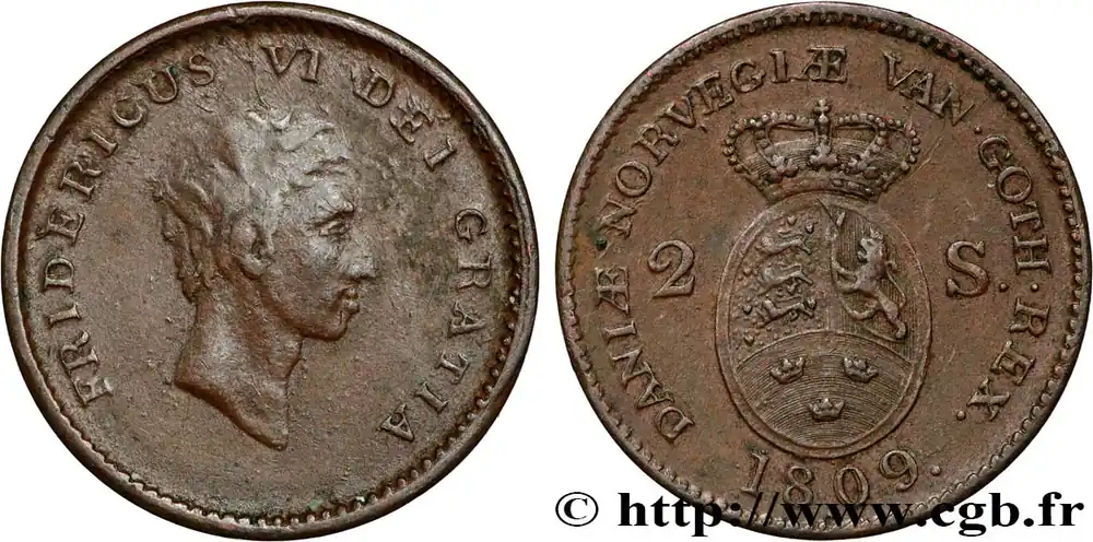 DANEMARK 2 Skilling Frédéric VI 1809 Copenhague fwo_868596 Monde Prix Choc