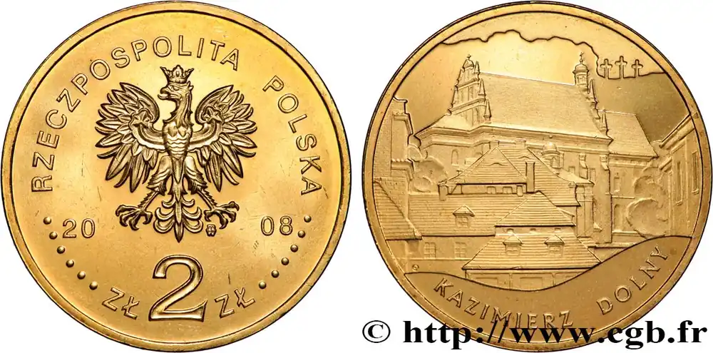 Édition Limitée POLOGNE 2 Zlote Kazimierz Dolny avec l’églie Ste Anne 2008 Varsovie fwo_762665 Monde