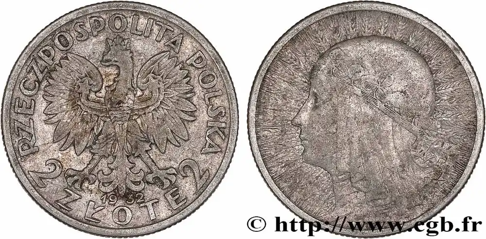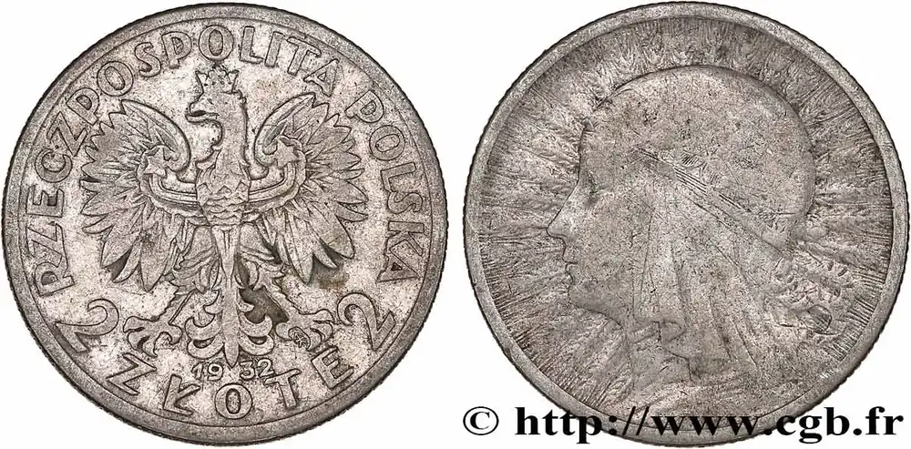 POLOGNE 2 Zlote Reine Jadwiga 1932 Varsovie fwo_777668 Monde Prix Choc