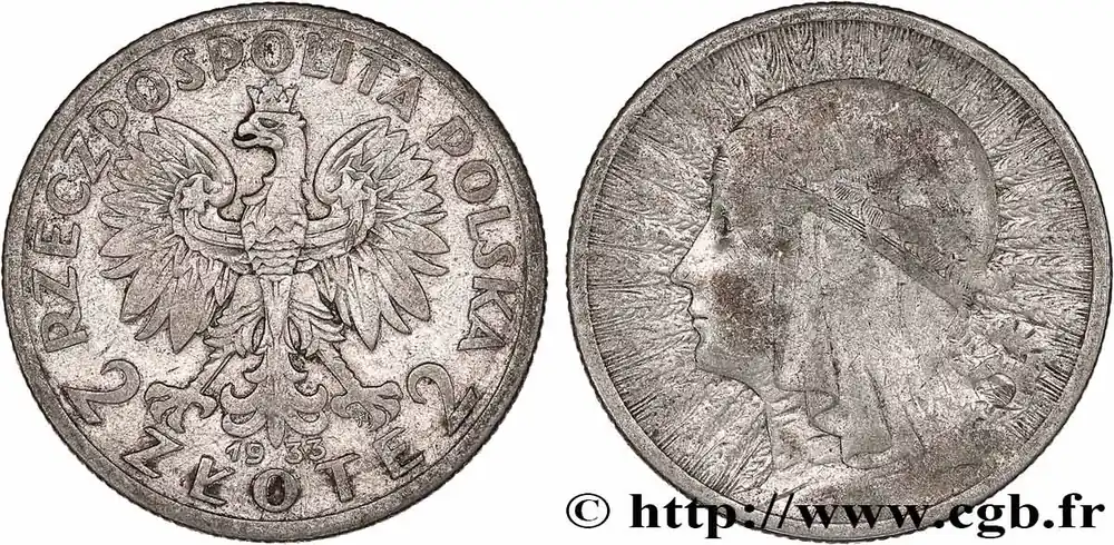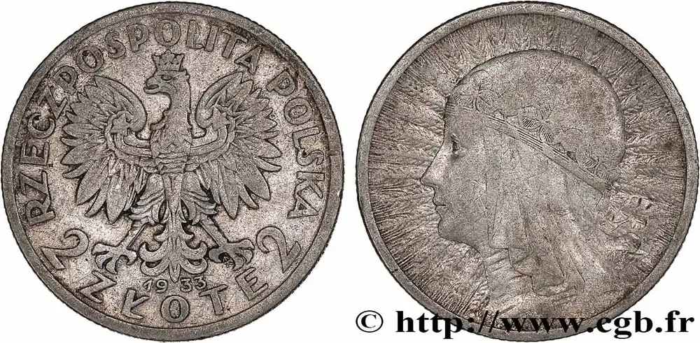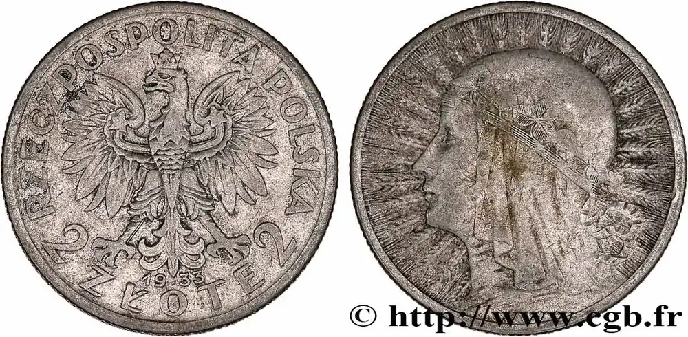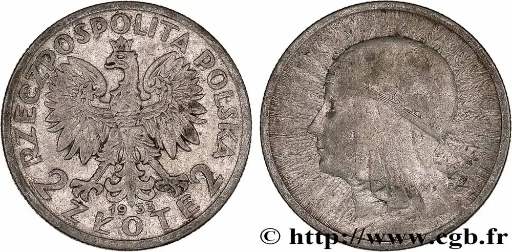 POLOGNE 2 Zlote reine Jadwiga 1933 Varsovie fwo_777682 Monde Produit De Marque