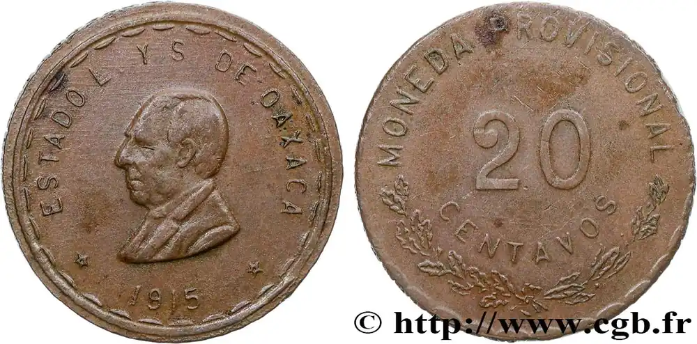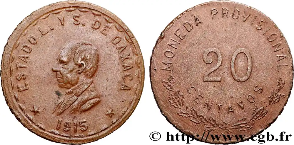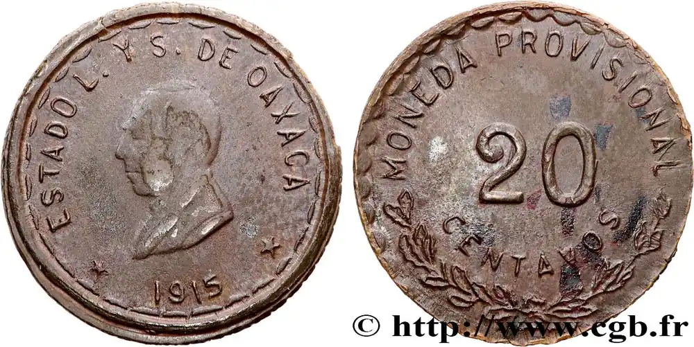 MEXIQUE – GOUVERNEMENT PROVISOIRE D’OAXACA 20 Centavos 1915 fwo_711524 Monde Exclusif