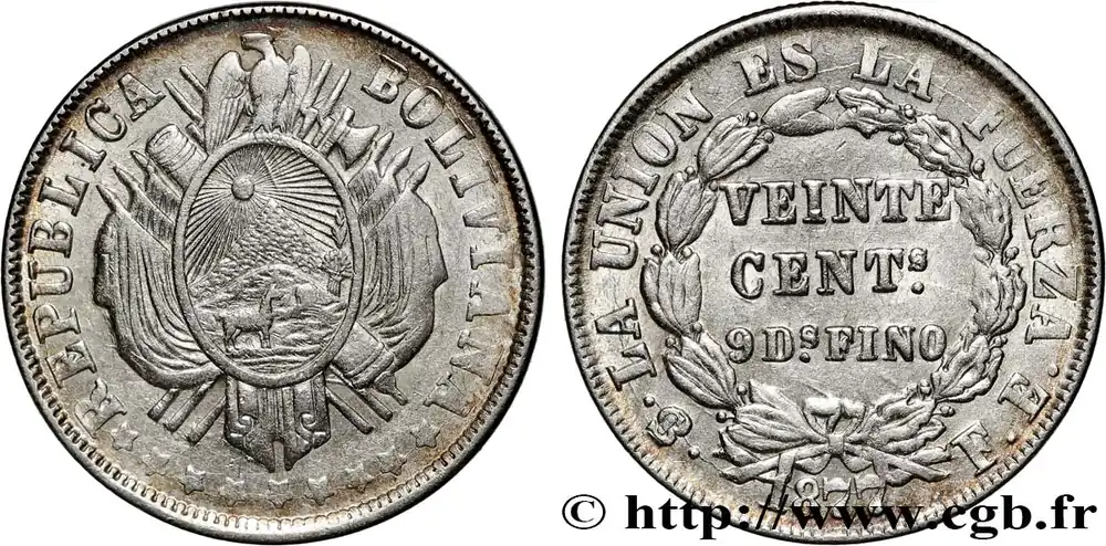 BOLIVIE 20 Centavos 1877 Potosi fwo_875758 Monde Populaire