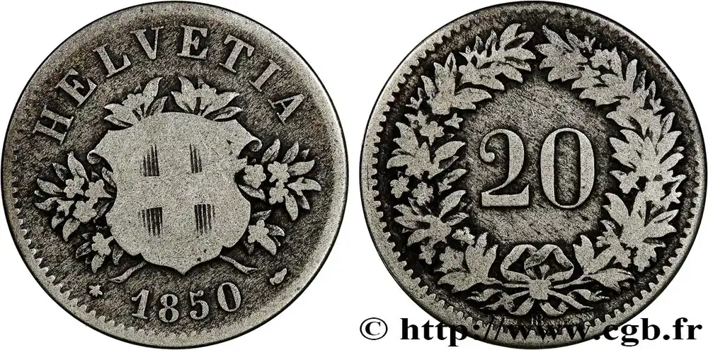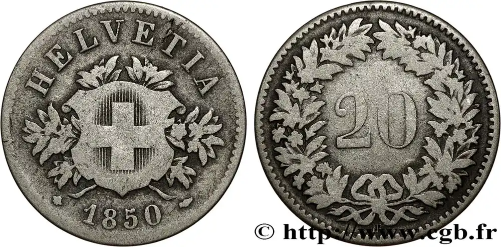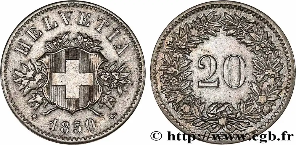 SUISSE 20 Centimes (Rappen) 1850 Strasbourg – BB fwo_808891 Monde Seulement Aujourd’hui