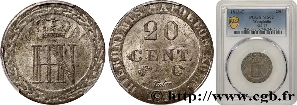 Édition Limitée ALLEMAGNE – ROYAUME DE WESTPHALIE – JÉRÔME NAPOLÉON 20 Centimes 1812 Cassel fwo_811811 Monde