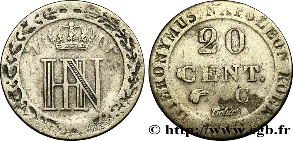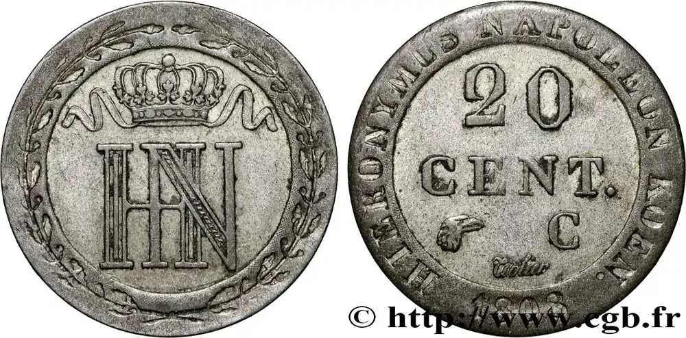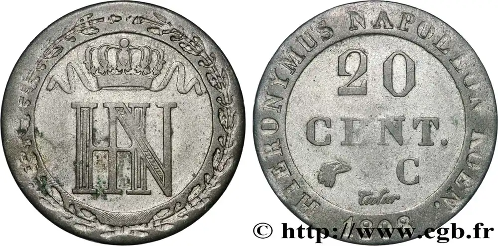 ALLEMAGNE – ROYAUME DE WESTPHALIE – JÉRÔME NAPOLÉON 20 Centimes 1812 Cassel fwo_852616 Monde Offre Exclusive