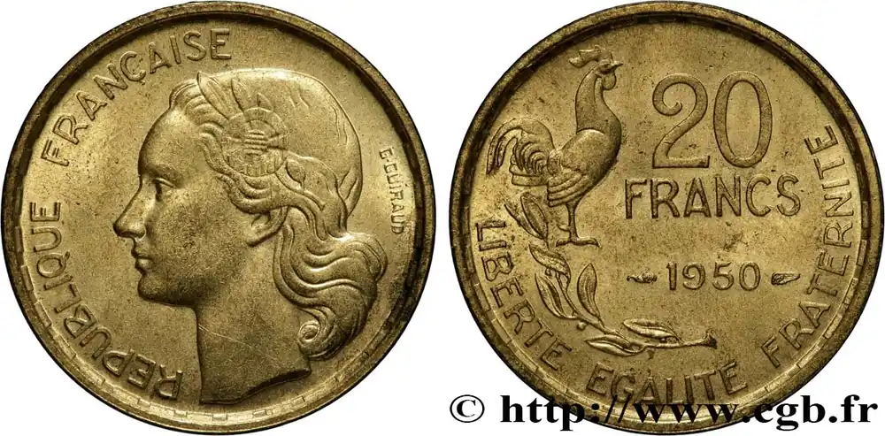 20 francs G. Guiraud, 4 faucilles 1950 F.402/3 fmd_604500 Modernes Populaire