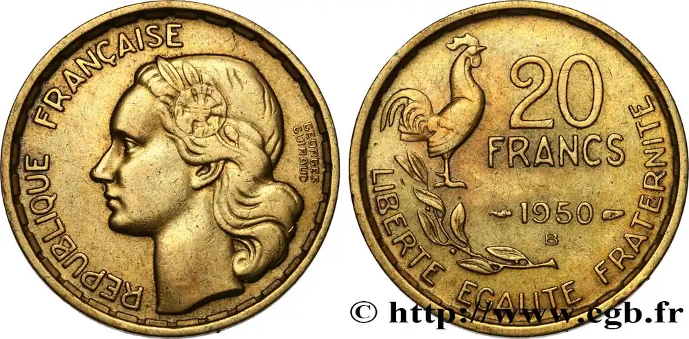 20 francs Georges Guiraud, 4 faucilles 1950 Beaumont-Le-Roger F.401/3 fmd_619317 Modernes Livraison Express
