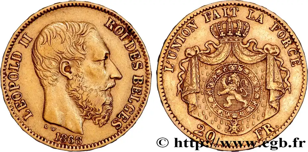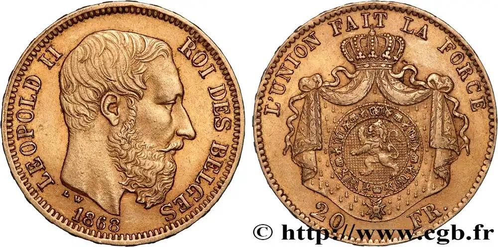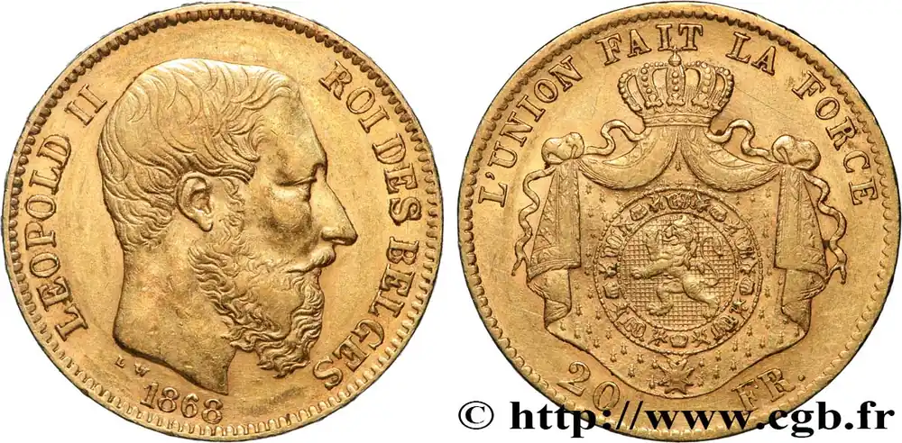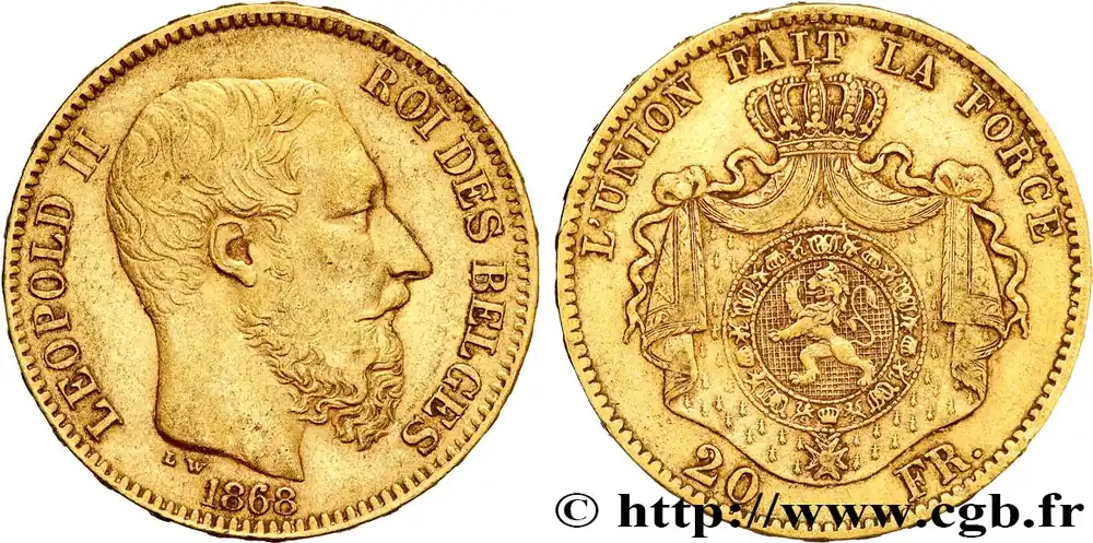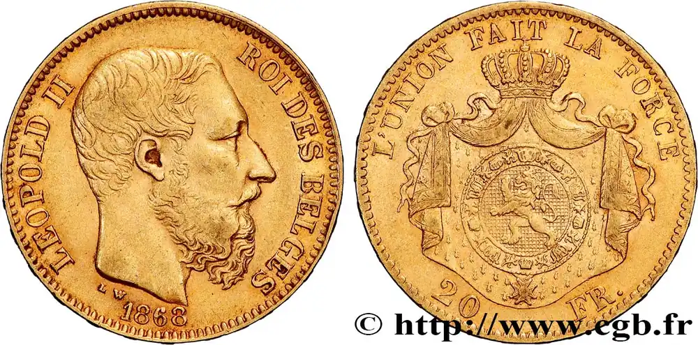 OR, PALLADIUM ET PLATINE INVESTISSEMENT 20 Francs Léopold II 1868 Bruxelles fwo_834600 Monde Populaire