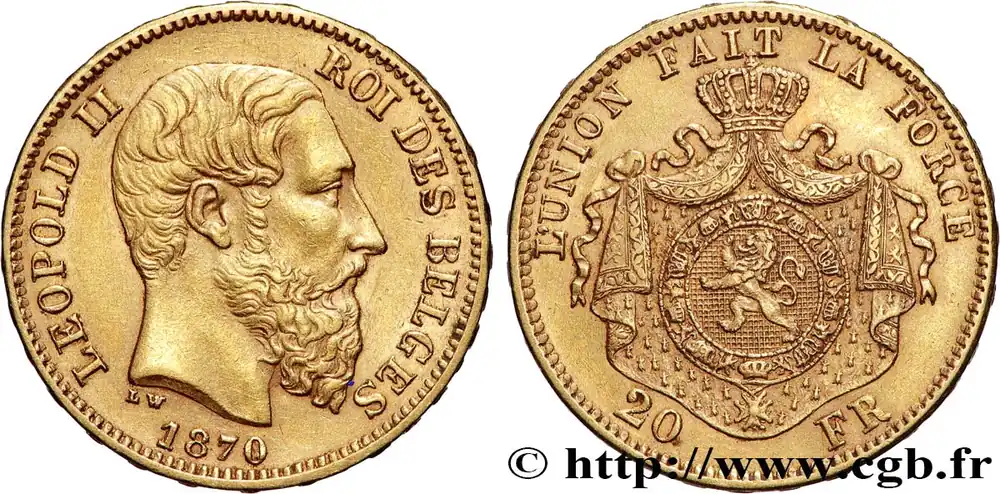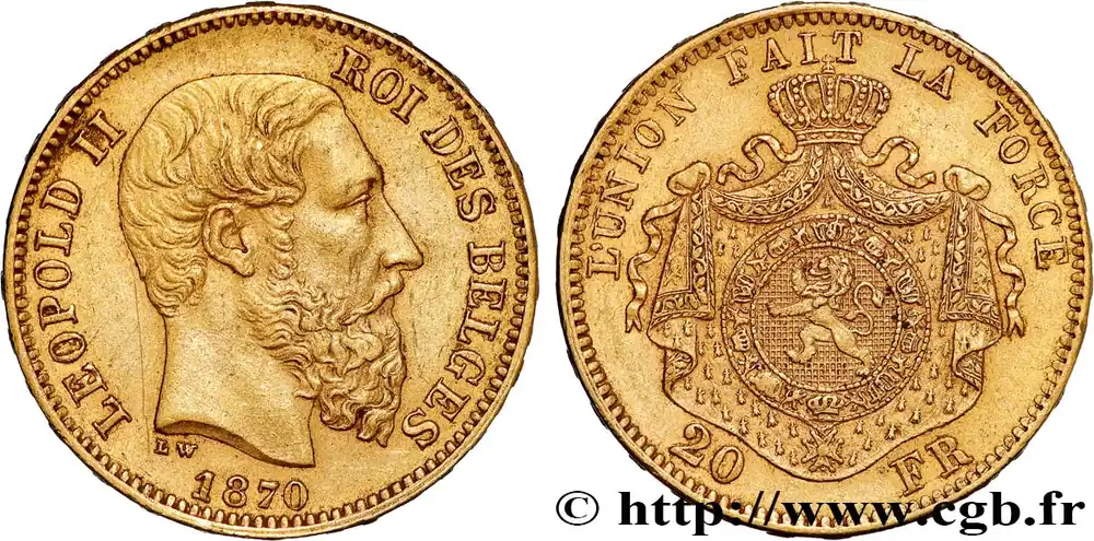 OR, PALLADIUM ET PLATINE INVESTISSEMENT 20 Francs Léopold II 1870 Bruxelles fwo_765370 Monde Commande En Gros