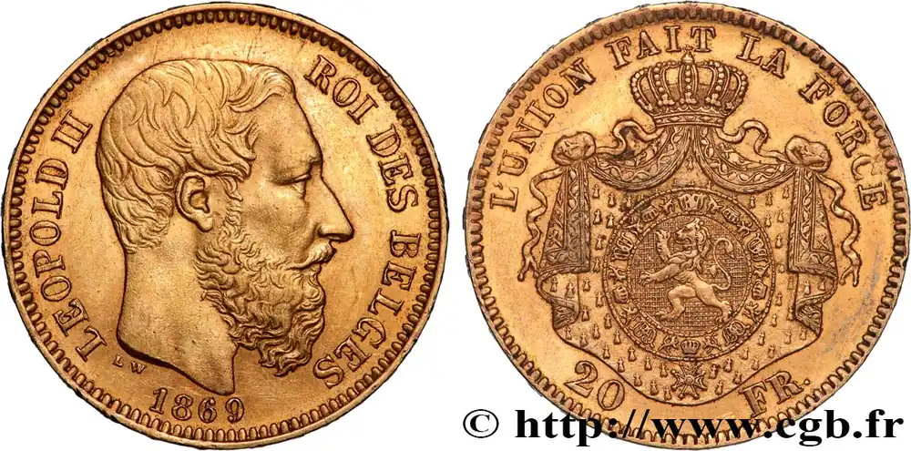 OR, PALLADIUM ET PLATINE INVESTISSEMENT 20 Francs Léopold II 1869 Bruxelles fwo_890363 Monde Tendance