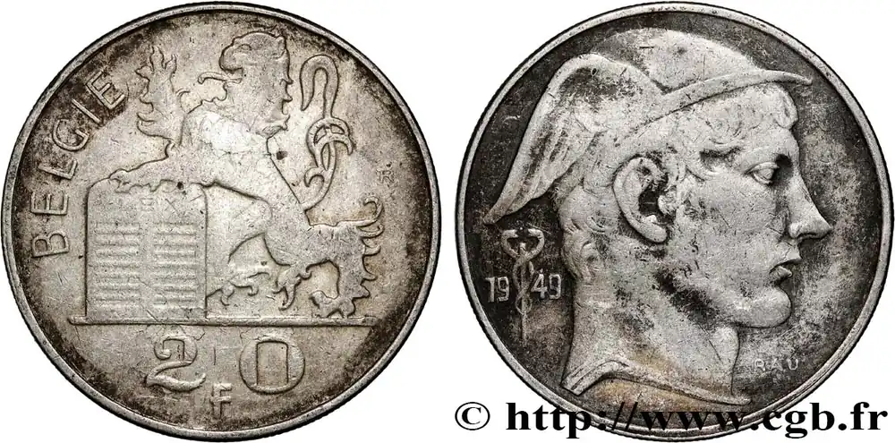 BELGIQUE 20 Francs Mercure, légende flamande 1949 fwo_789943 Monde Marque