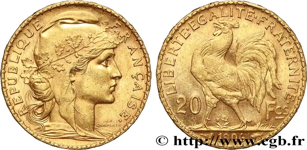 Prix Choc 20 francs or Coq, Dieu protège la France 1906 Paris F.534/11 fmd_611487 Modernes