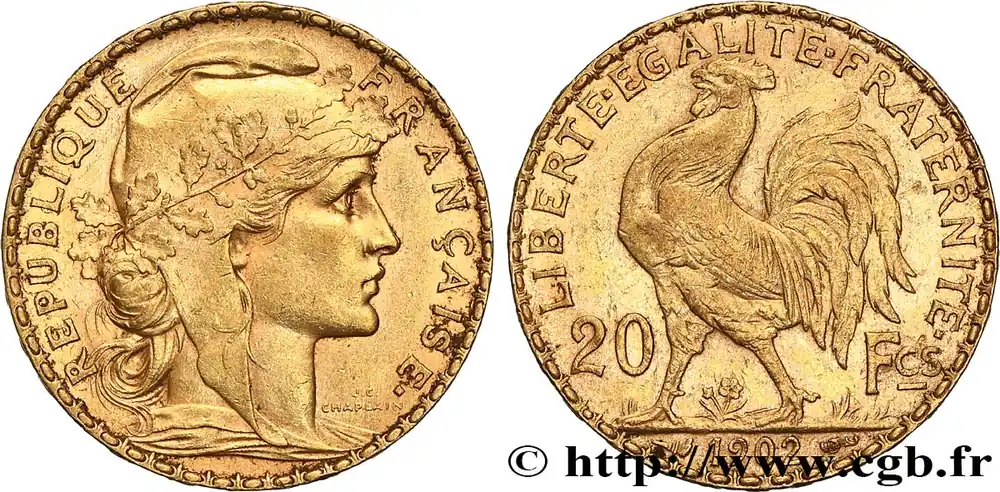 Top Qualité 20 francs or Coq, Dieu protège la France 1902 Paris F.534/7 fmd_620718 Modernes
