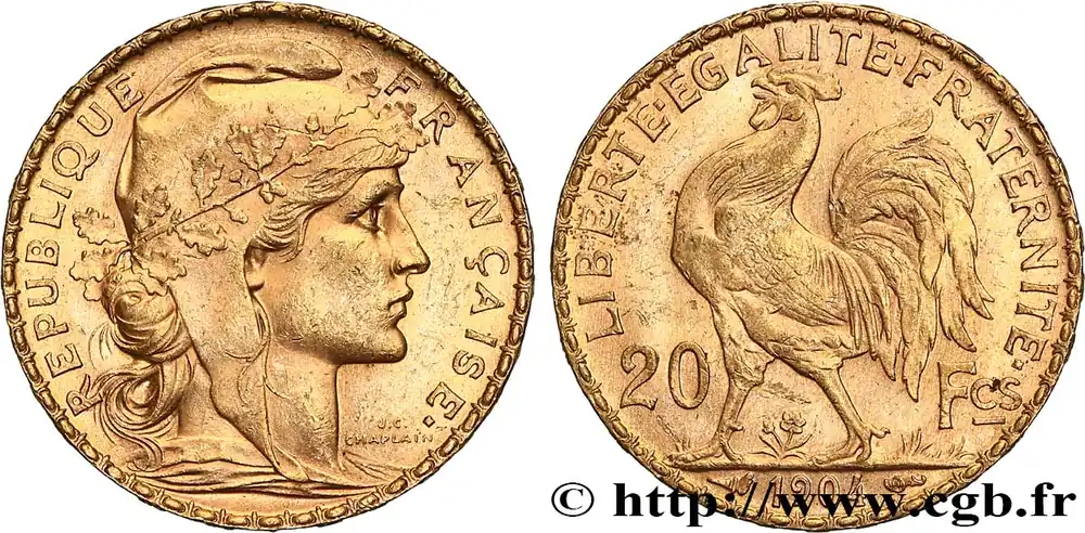 Prix Choc 20 francs or Coq, Dieu protège la France 1904 Paris F.534/9 fmd_683733 Modernes