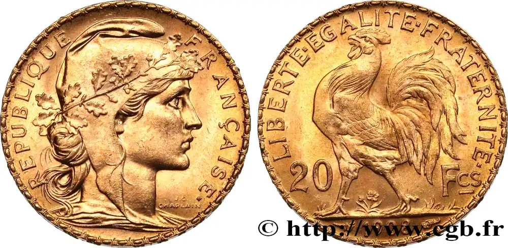 20 francs or Coq, Liberté Égalité Fraternité 1908 Paris F.535/2 fmd_585504 Modernes Premium